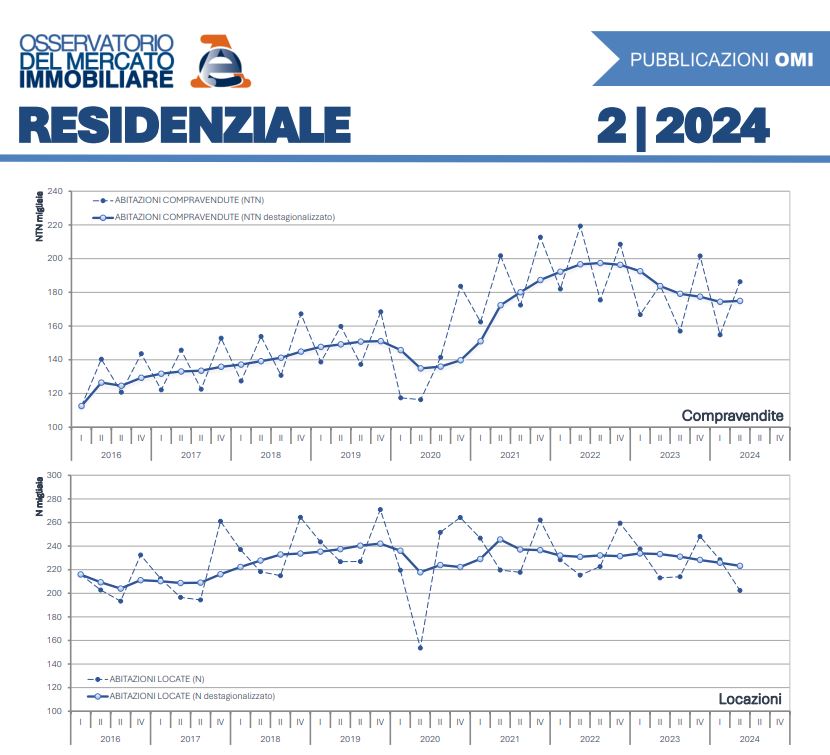 Nel secondo trimestre del 2024, le compravendite di abitazioni sono cresciute dell’1,2% su base annua, con aumenti lievi ma omogenei su tutto il territorio. Le grandi città, però, mostrano variazioni diverse. La quota di persone che acquistano con mutuo ipotecario è salita oltre il 40%, in aumento rispetto al trimestre precedente. Anche la percentuale di prime case acquistate è aumentata, raggiungendo il 71%, mentre solo il 6,4% delle abitazioni comprate è di nuova costruzione. Nel mercato delle locazioni, si registra un calo del 2,7% dei nuovi contratti rispetto al Q2 2023. Tuttavia, i contratti transitori (+1,3%) e quelli agevolati per studenti, sia per abitazioni intere (+4,5%) che per porzioni (+25,7%), sono in crescita. Il canone complessivo ha superato 1,3 miliardi di euro, in aumento per tutti i segmenti.